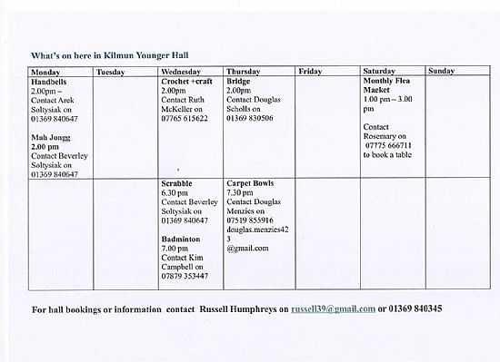 Younger Hall, Kilmun is looking for volunteers and management committe members, if you are interested please contact the hall via this website. Many thanks